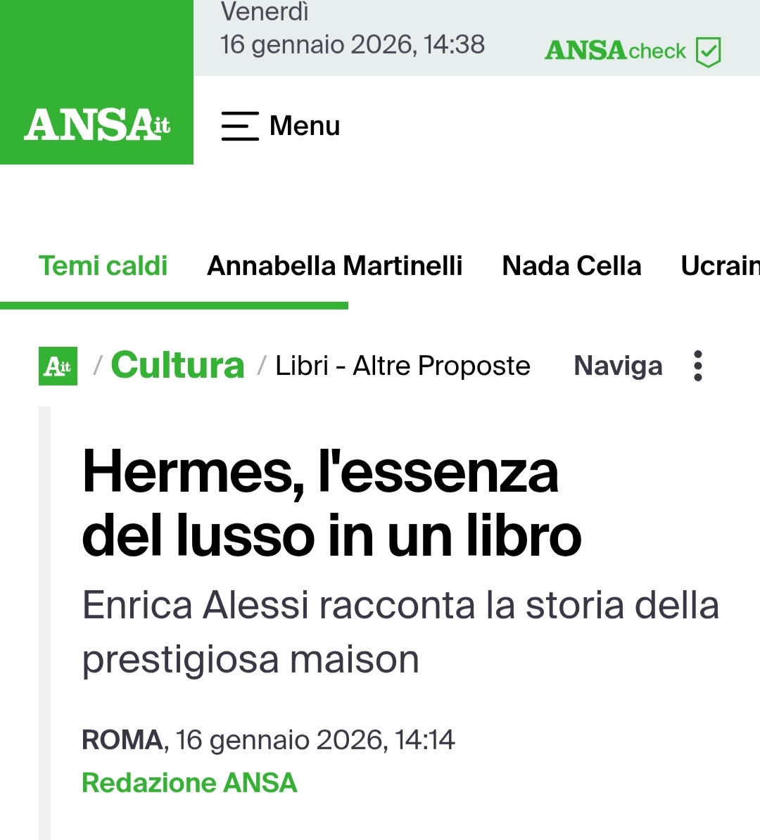 Hermes, l'essenza del lusso in un libro Enrica Alessi racconta la storia della prestigiosa maison - Ansa
