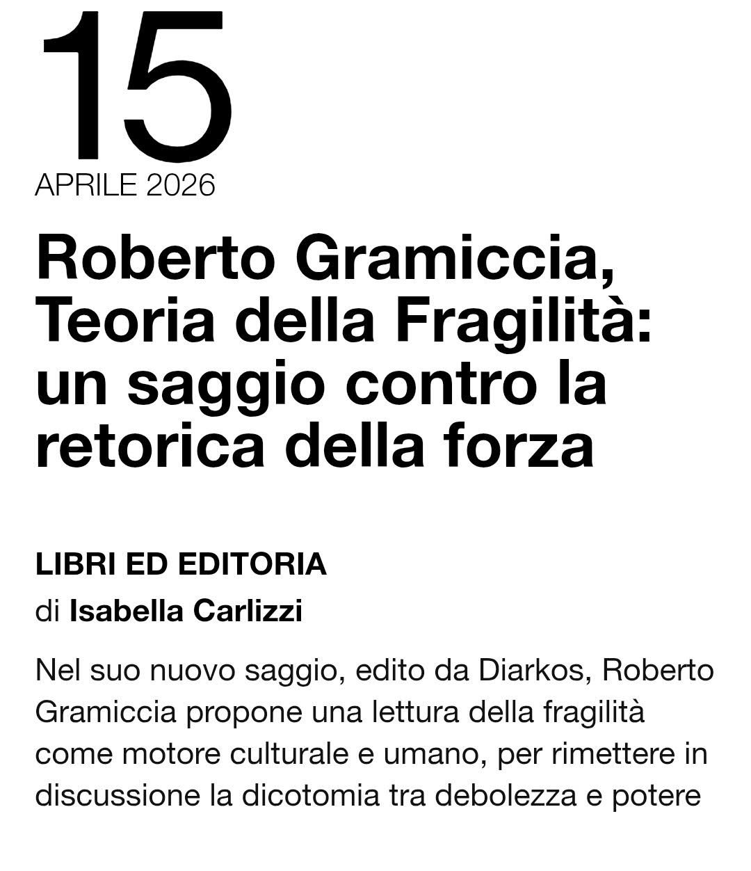 Roberto Gramiccia, Teoria della Fragilità: un saggio contro la retorica della forza - Exibart