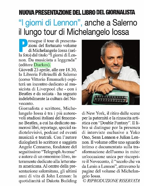 Michelangelo Iossa, a Salerno la presentazione del libro "I giorni di Lennon. Da musicista a leggenda" - Fatti Italiani