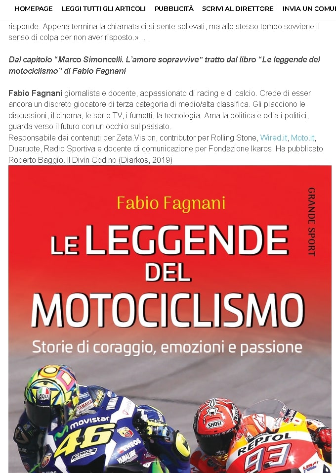 Dal capitolo “Marco Simoncelli. L’amore sopravvive” tratto dal libro “Le leggende del motociclismo” di Fabio Fagnani