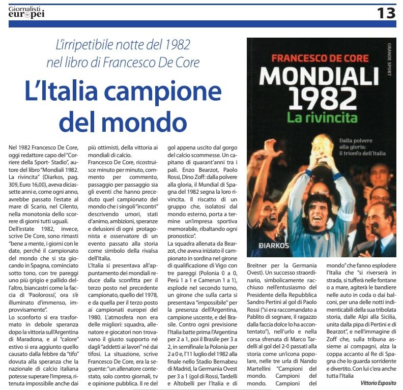 Nel 1982 Francesco De Core, oggi redattore capo del“Corriere della Sport- Stadio”, autore del libro“Mondiali 1982.