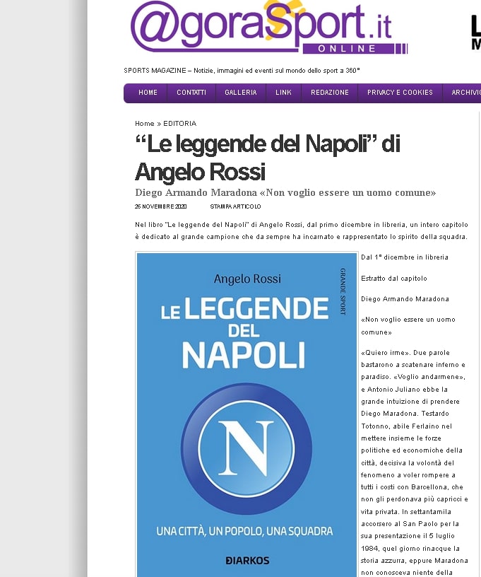 “Le leggende del Napoli” di Angelo Rossi su Agora sport Online