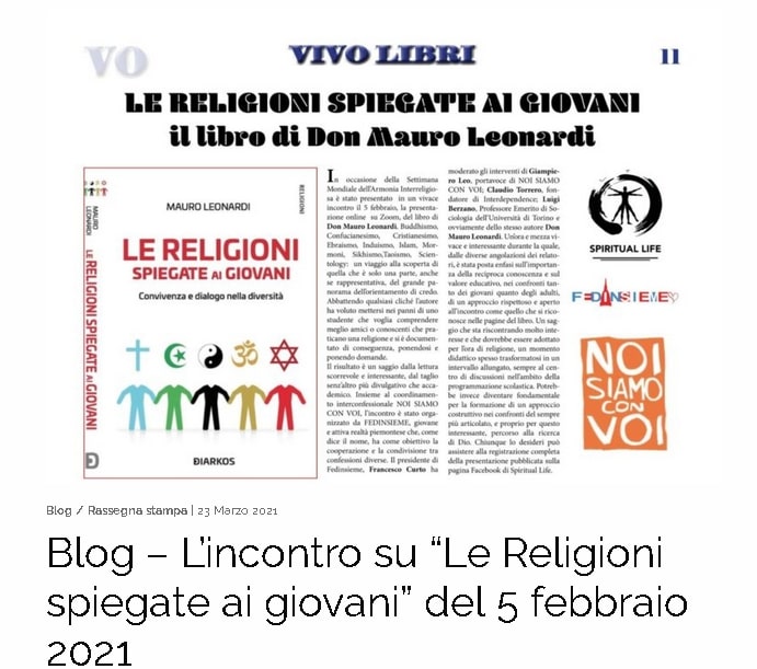 Ecco il resoconto della Presentazione del libro Le religioni spiegate ai giovani del 5 febbraio 2021 apparso sul numero di marzo del mensile VIVO MAGAZINE