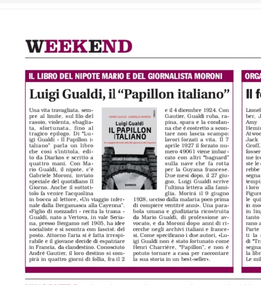speciale del quotidiano Il Giorno. Anche il sottotitolo fa venire l’acquolina in bocca al lettore, «Un viaggio infernale dalla Bergamasca alla Cayenna”.