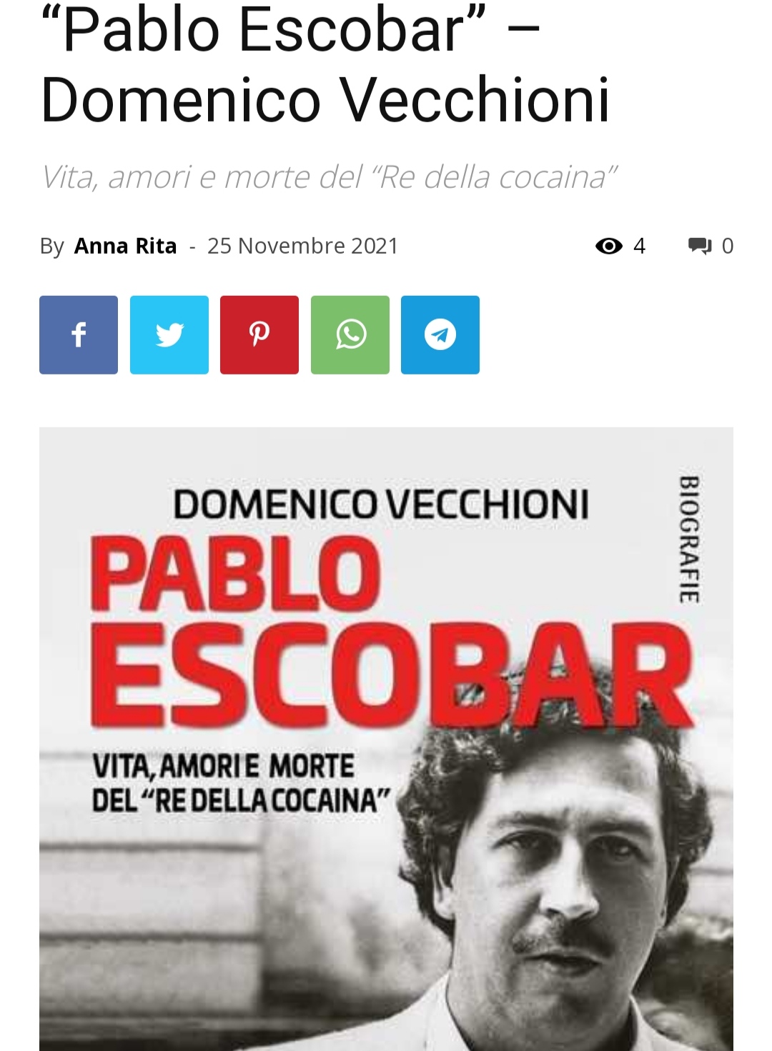 Link all'articolo: https://www.lefrasipiubelledeilibri.it/2021/11/25/pablo-escobar-domenico-vecchioni/