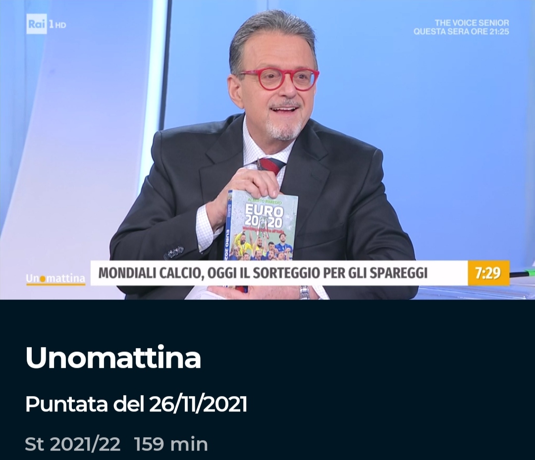 Alberto Rimedio ospite a Uno mattina parla del suo libro "Euro 2020"