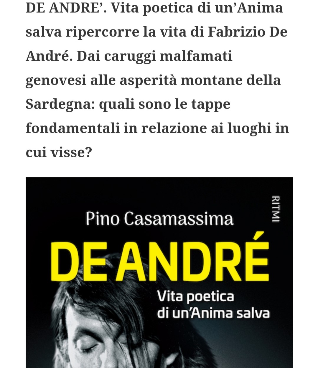 DE ANDRE’. Vita poetica di un’Anima salva ripercorre la vita di Fabrizio De André. Dai caruggi malfamati genovesi alle asperità montane della Sardegna: quali sono le tappe fondamentali in relazione ai luoghi in cui visse?