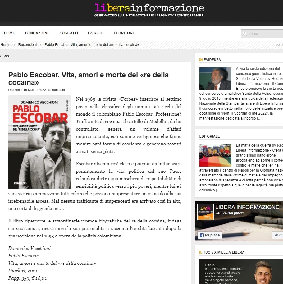 Link all'articolo: http://www.liberainformazione.org/2022/03/19/pablo-escobar-vita-amori-e-morte-del-re-della-cocaina/