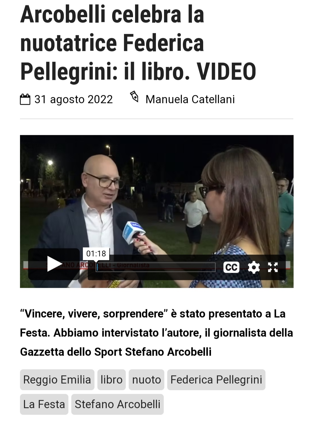 Arcobelli celebra la nuotatrice Federica Pellegrini: il libro. VIDEO - reggionline