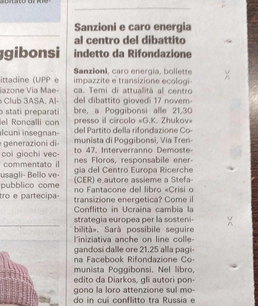Sanzioni e caro energia : Crisi o transizione energetica? _ La Nazione di Siena