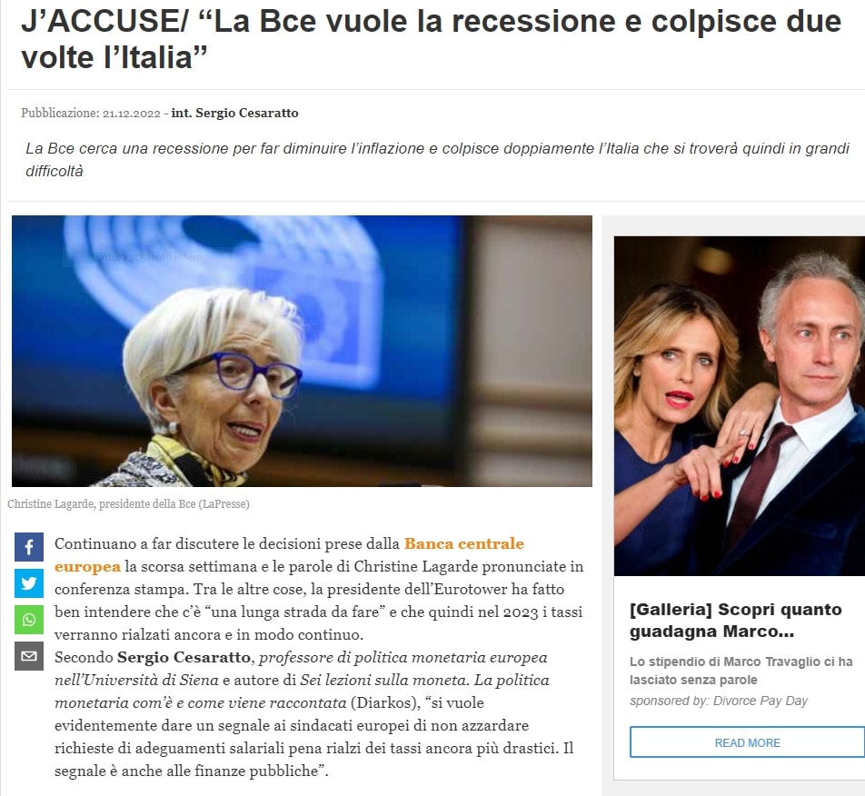 J’ACCUSE/ “La Bce vuole la recessione e colpisce due volte l’Italia”