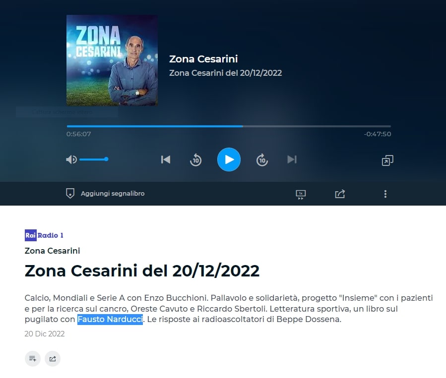 Zona Cesarini di Radio1 Rai del 22/12/2022 ospite: Riccardo Crivelli con il suo "Rafael Nadal. Una questione di talento"