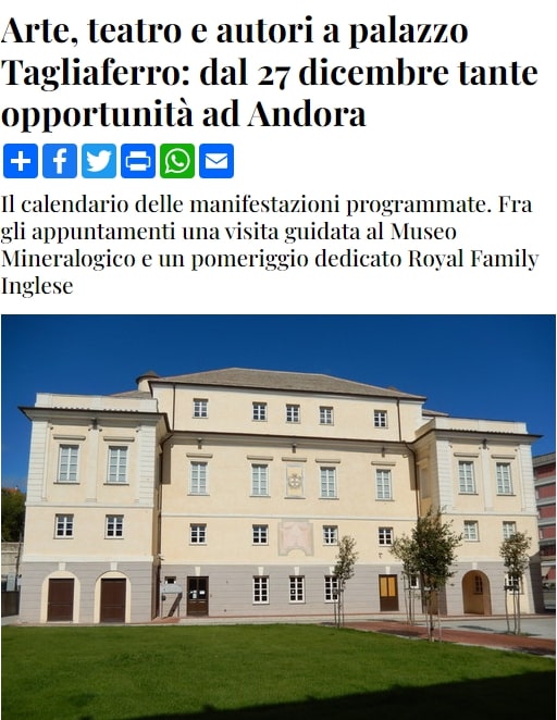 Arte, teatro e autori a palazzo Tagliaferro: dal 27 dicembre tante opportunità ad Andora