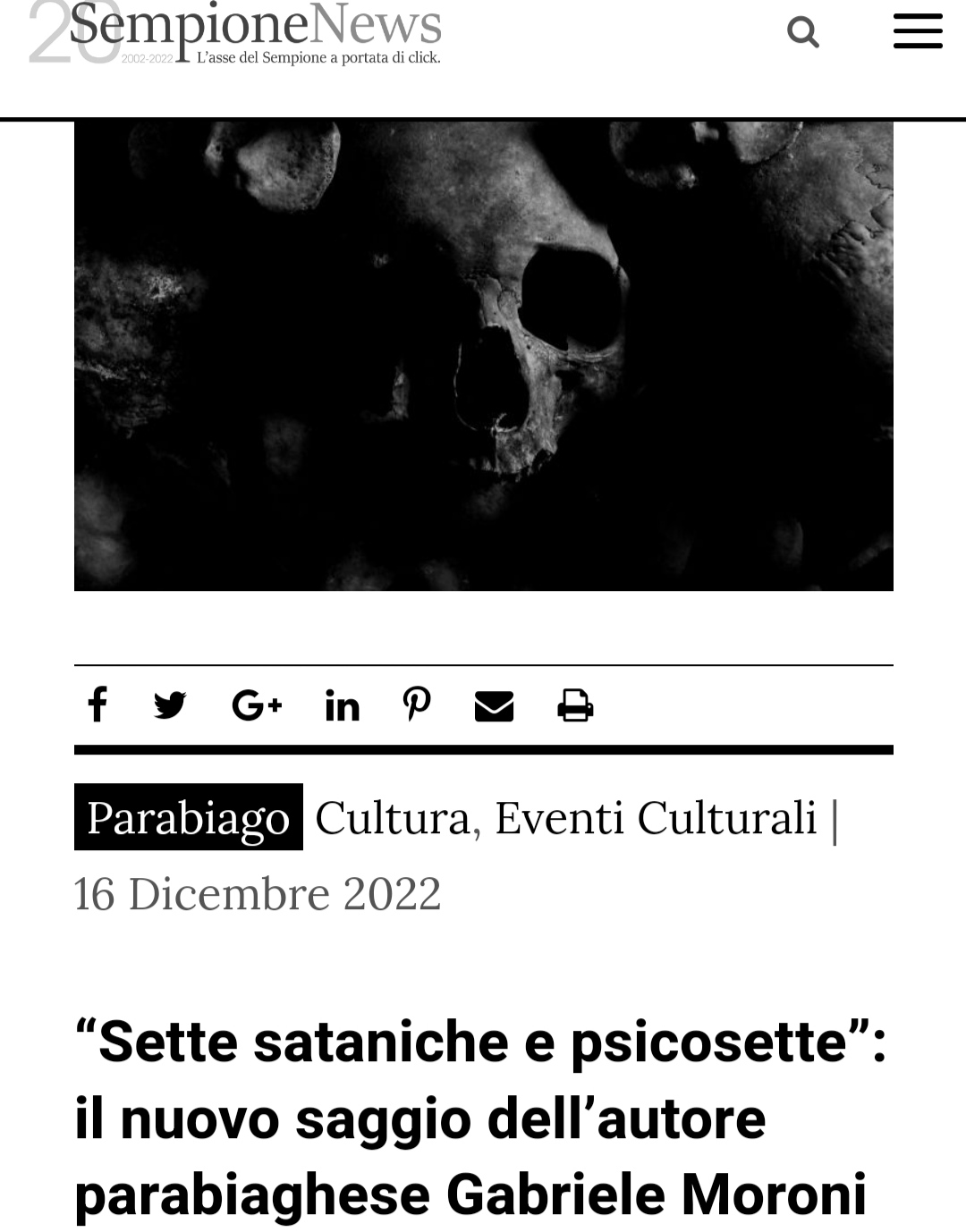 “Sette sataniche e psicosette”: il nuovo saggio dell’autore parabiaghese Gabriele Moroni