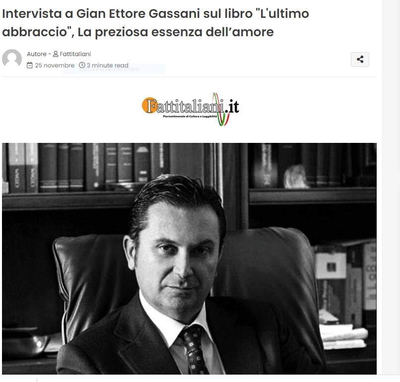 Intervista a Gian Ettore Gassani sul libro "L'ultimo abbraccio", La preziosa essenza dell’amore - Fatti italiani