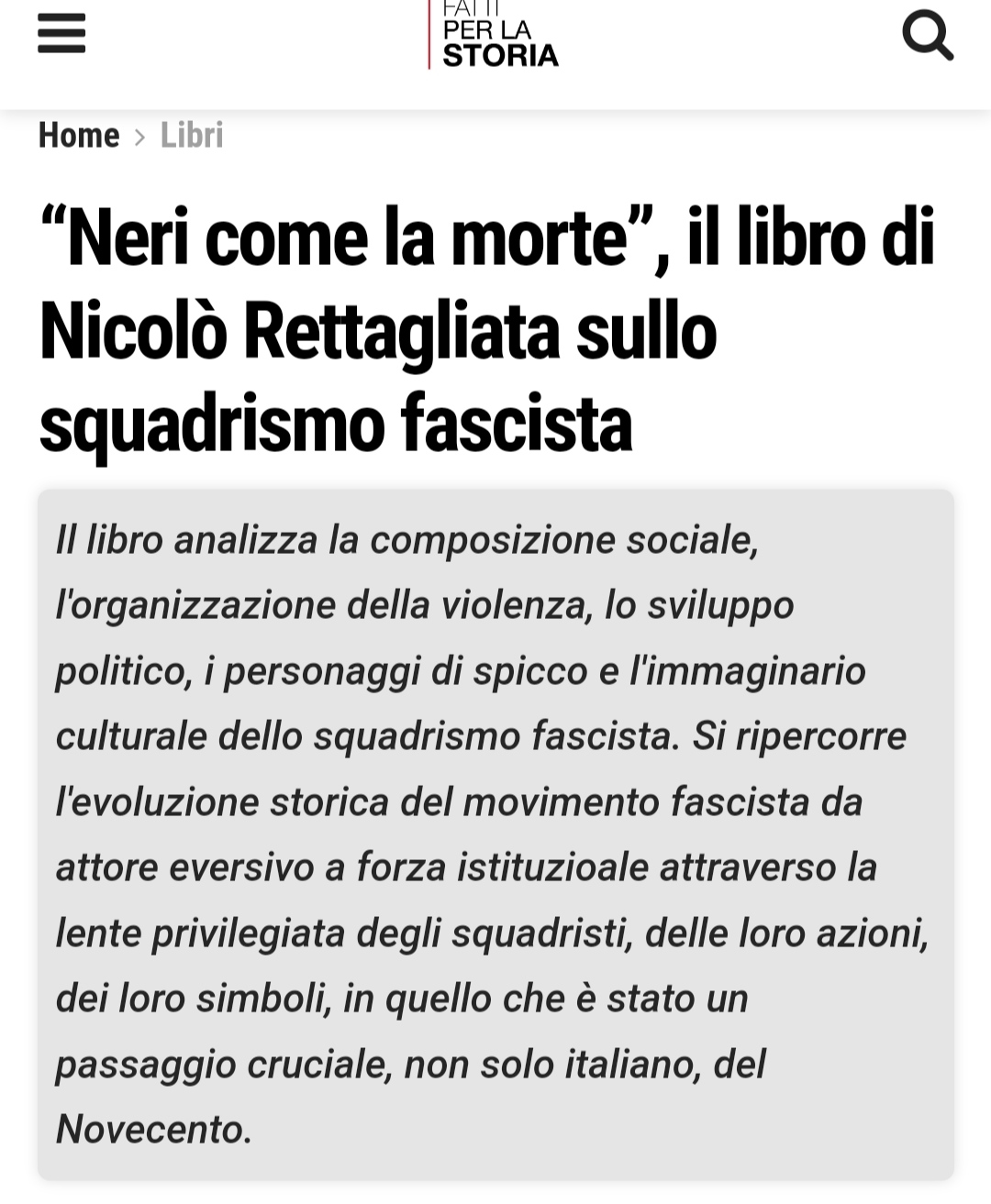 “Neri come la morte”, il libro di Nicolò Rettagliata sullo squadrismo fascista