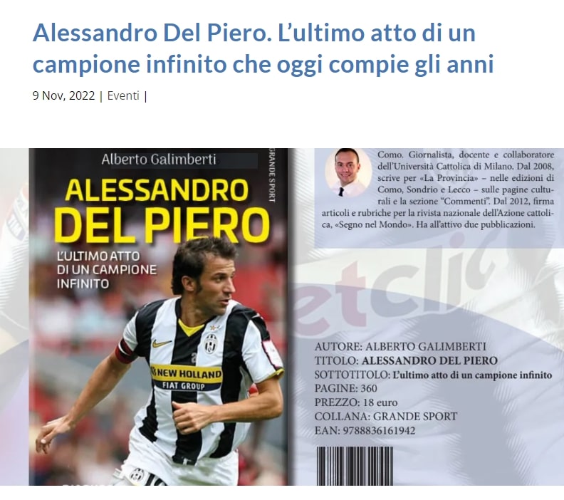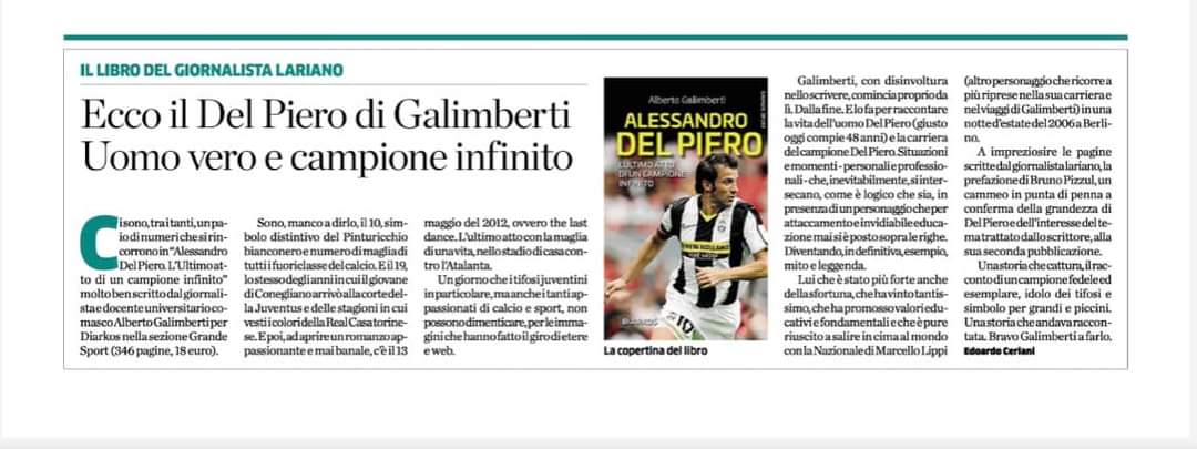 Il libro del giorno: “Alessandro Del Piero. L’ultimo atto di un campione infinito” di Alberto Galimberti - L'Agenda