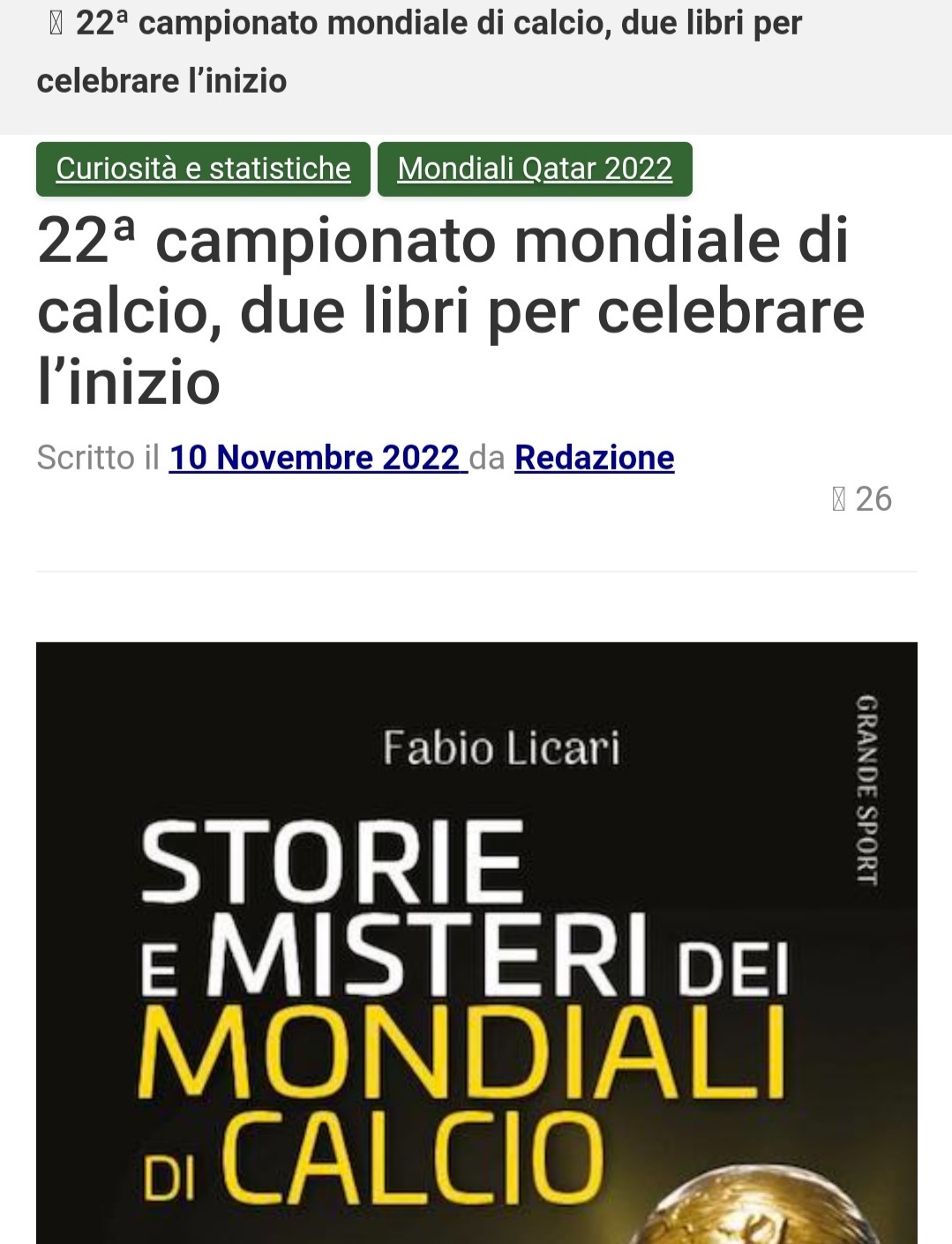 Fabio Licari, Storie e misteri dei Mondiali di calcio per Crescere Informandosi