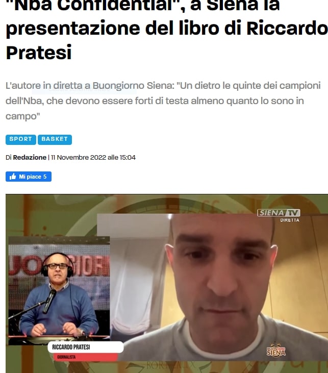 "Nba Confidential", a Siena la presentazione del libro di Riccardo Pratesi- Radio Siena Tv