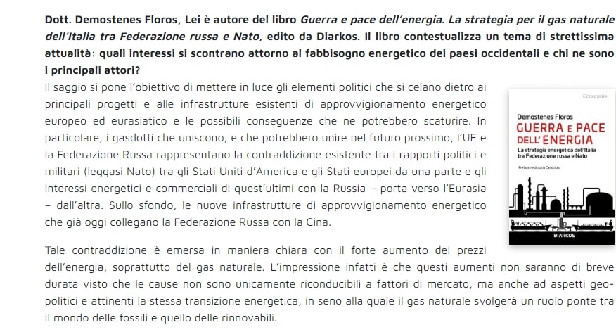“Guerra e pace dell’energia. La strategia per il gas naturale dell’Italia tra Federazione russa e Nato” di Demostenes Floros