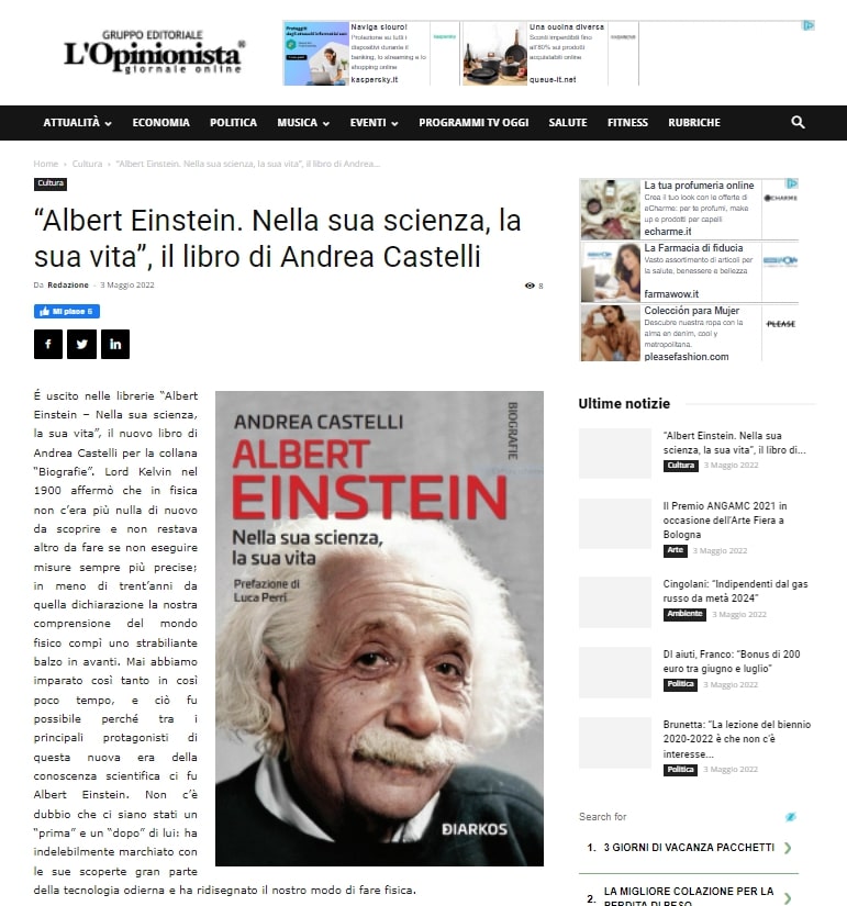 “Albert Einstein. Nella sua scienza, la sua vita”, il libro di Andrea Castelli - L'Opinionista