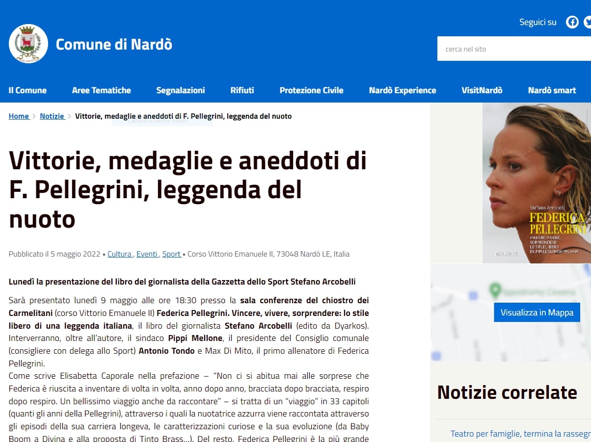Vittorie, medaglie e aneddoti di F. Pellegrini, leggenda del nuoto - Comune di Nardò