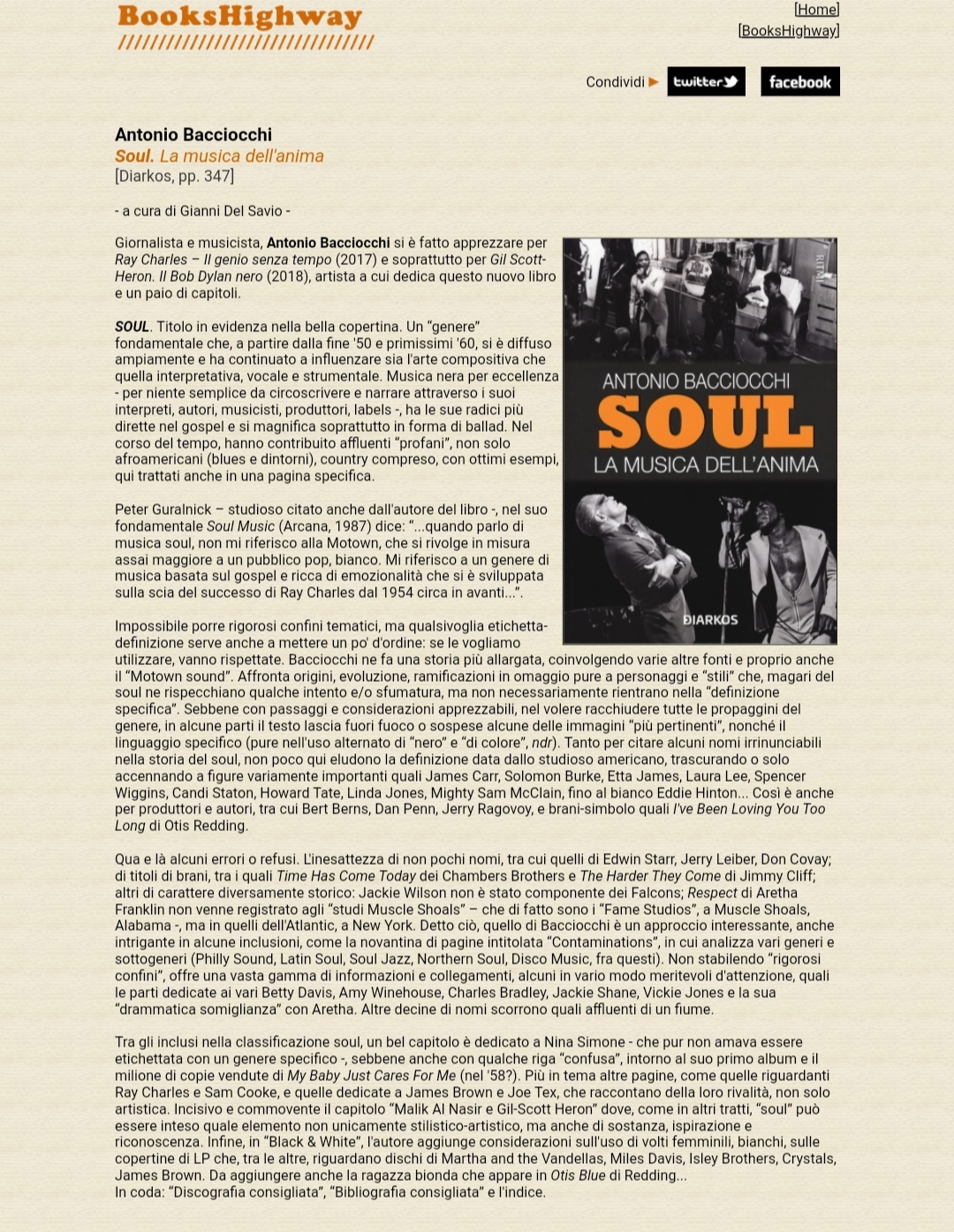 Antonio Bacciocchi Soul. La musica dell'anima - Books Highway