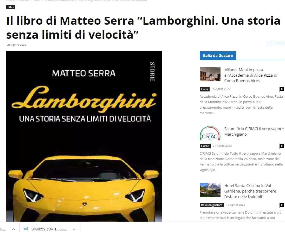 Matteo Serra ospite del Club Lamborghini per presentare il suo libro -Sabato 30 aprile 2022