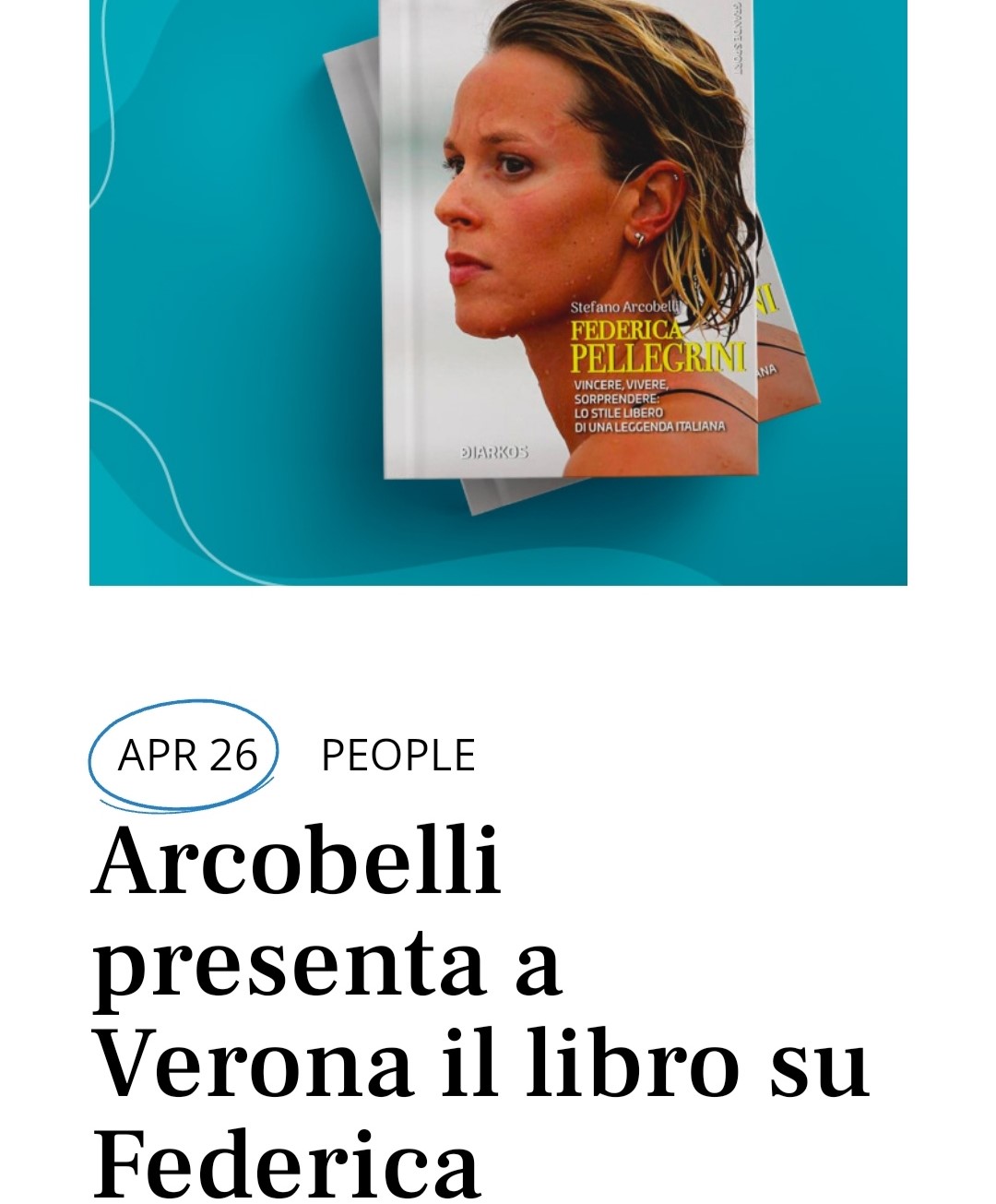 Arcobelli presenta a Verona il libro su Federica Pellegrini- On The Blue