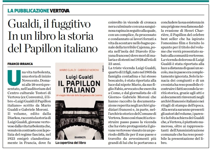 Gualdi, il fuggitivo In un libro la storia del Papillon italiano - L'Eco di Bergamo
