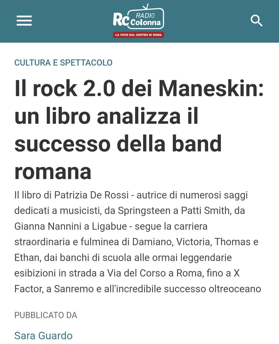 Patrizia De Rossi - "Maneskin - Italian rock 2.0" per Teleambiente