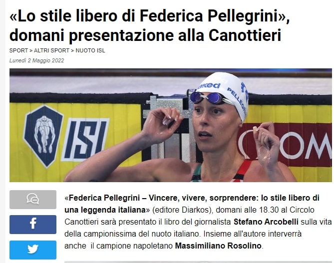 FEDERICA PELLEGRINI: il 29 aprile in Sciorba la presentazione del libro di Stefano Arcobelli