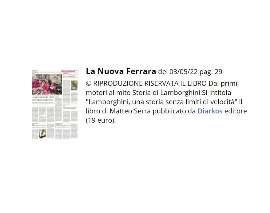 In occasione dell'anniversario della nascita di Ferruccio Lamborghini: Il libro di Matteo Serra “Lamborghini. Una storia senza limiti di velocità”