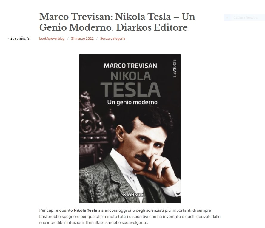 Marco Trevisan: Nikola Tesla – Un Genio Moderno. Diarkos Editore - Book Forever Blog