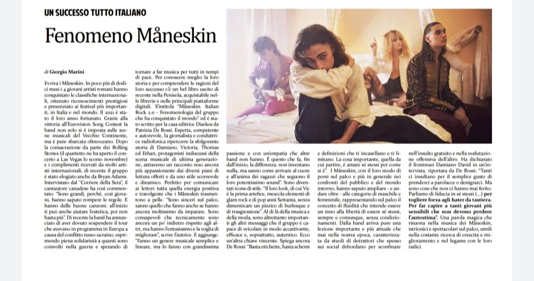 Segnalazione del libro di Patriza De Rossi uscita sul Corriere dell'italianità n. 12/2022