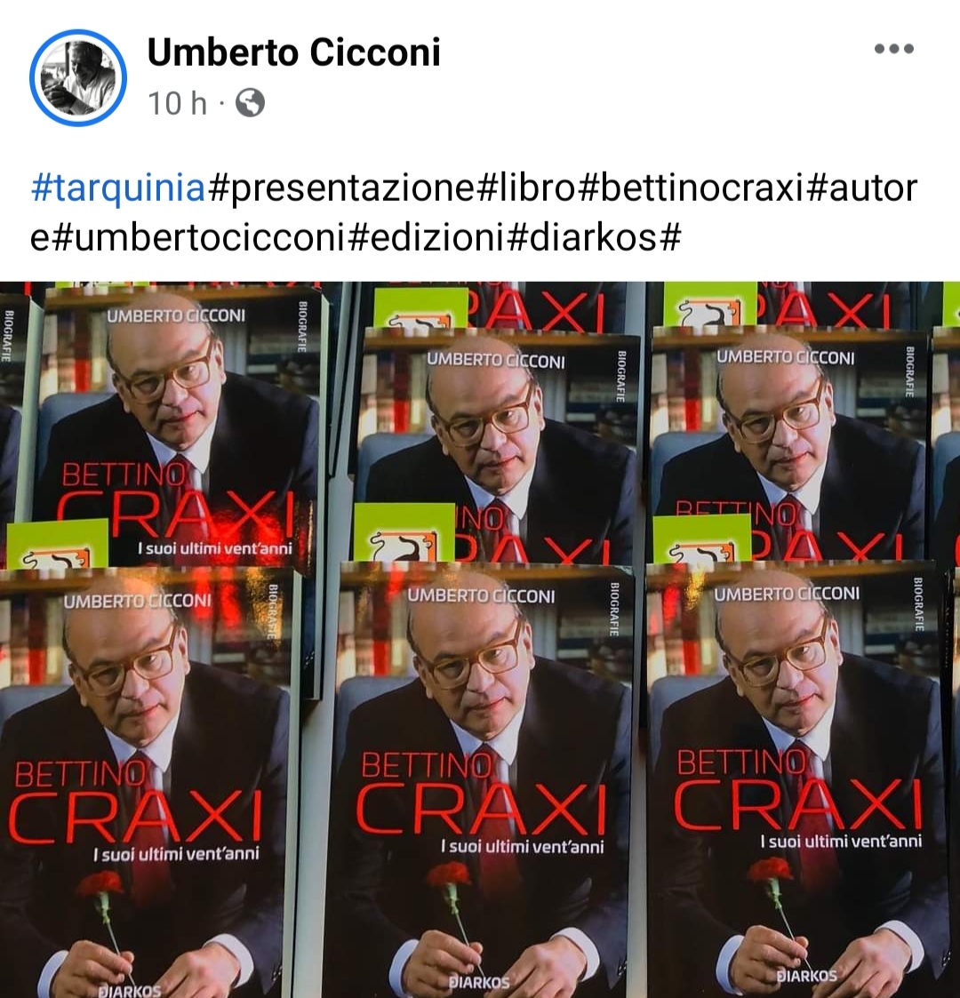 Sabato 9 aprile 2022 Presentazione di Bettino Craxi di Umberto Cicconi alla Biblioteca comunale di Tarquinia. Con la partecipazione di Bobo Craxi