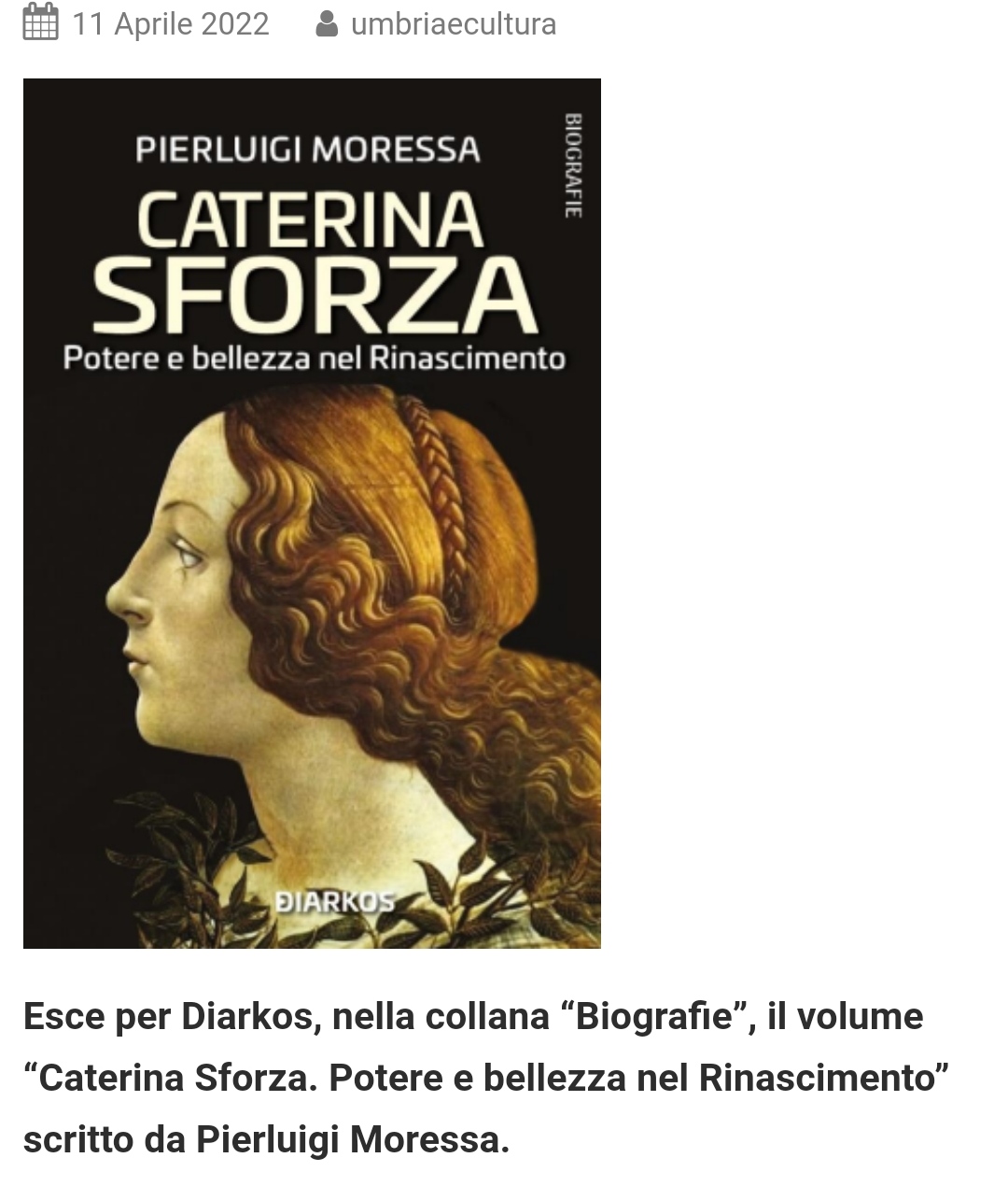 Libri. La figura di Caterina Sforza narrata da Pierluigi Moressa - UMBRIA E CULTURA