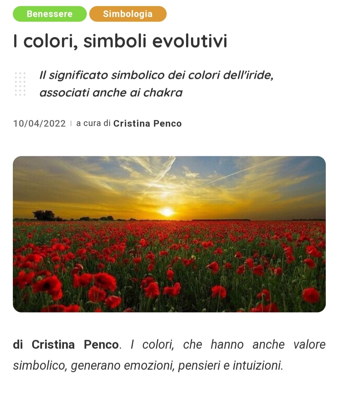 I colori, simboli evolutivi