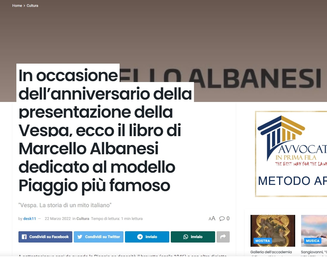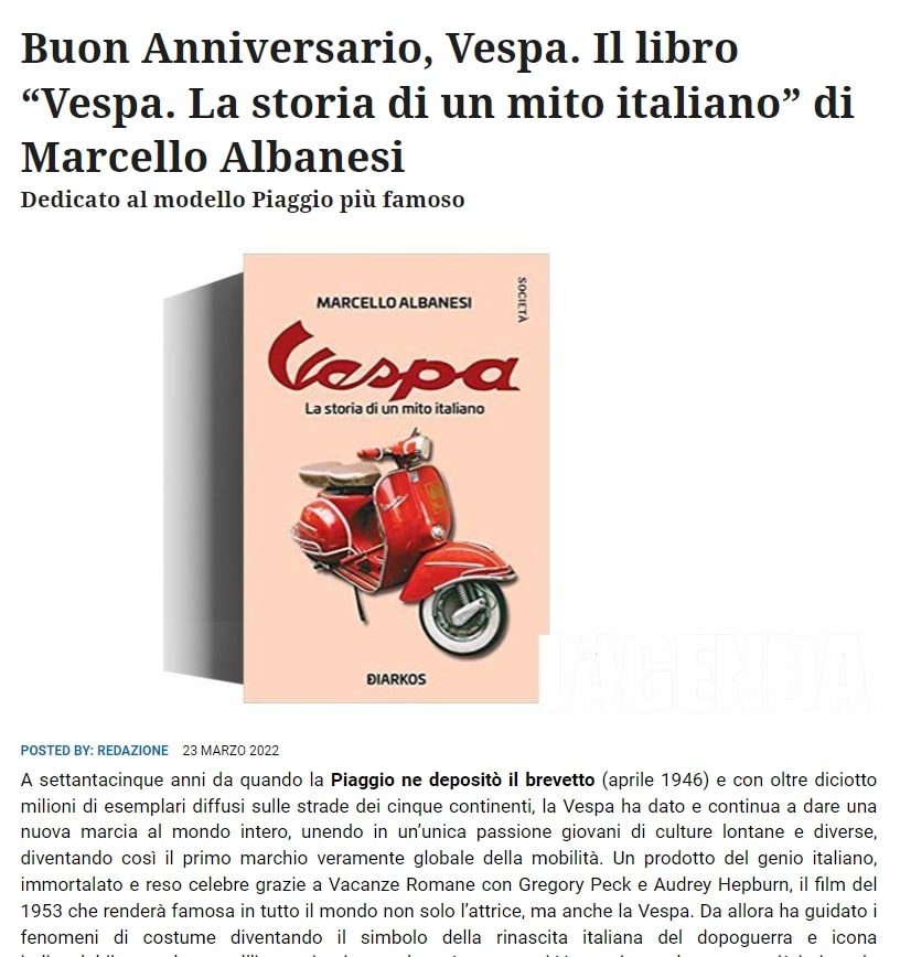 Buon Anniversario, Vespa. Il libro “Vespa. La storia di un mito italiano” di Marcello Albanesi