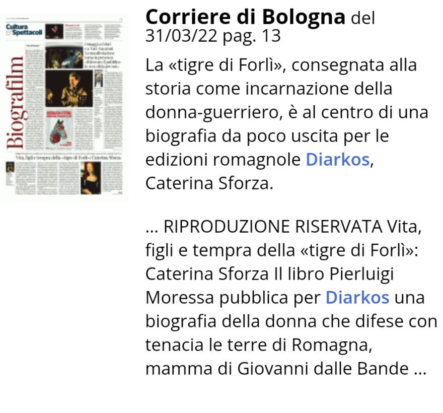 Caterina Sforza di Pierluigi Moressa su Corriere di Bologna