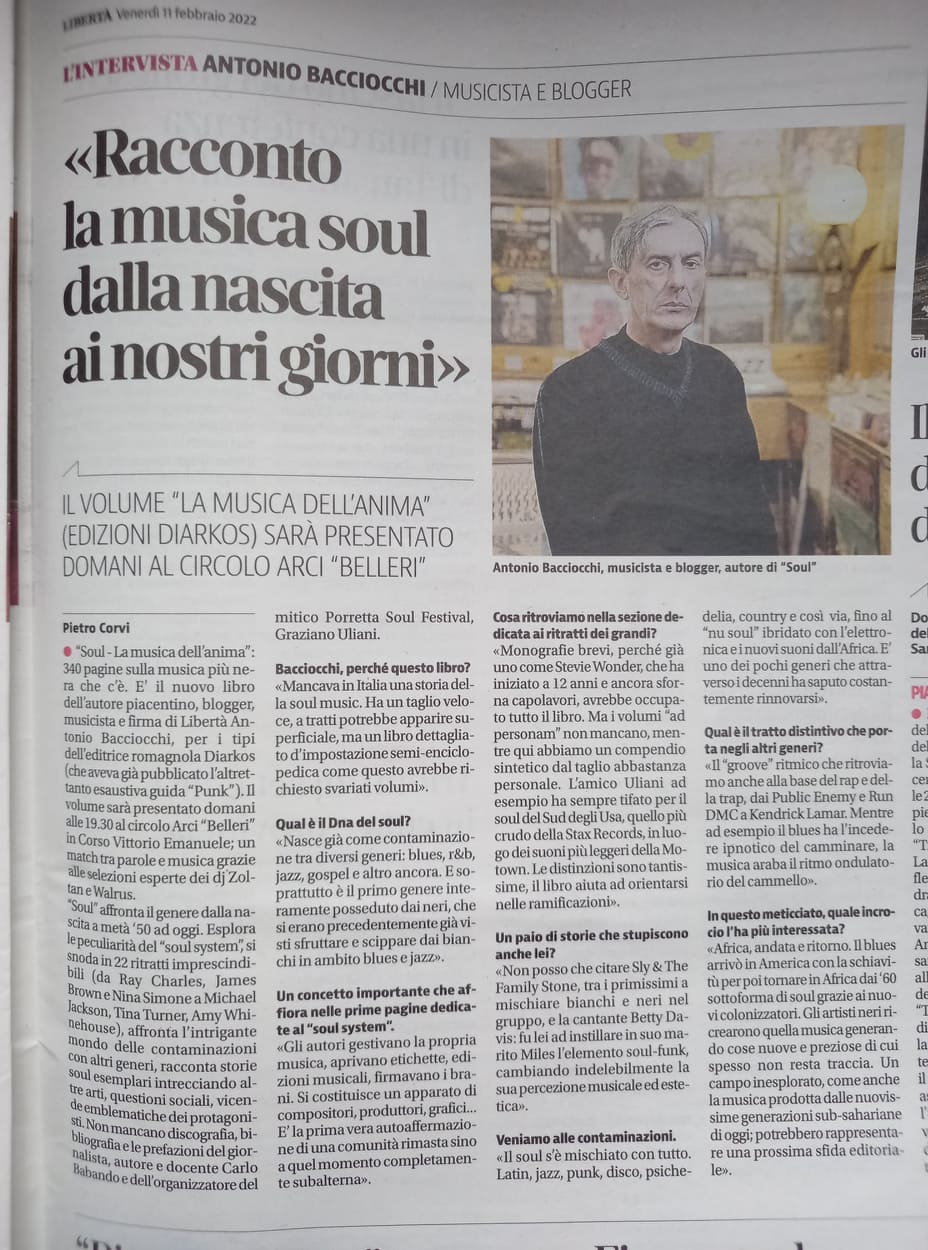 SOUL. La musica dell'anima su Alias, supplemento de Il Manifesto