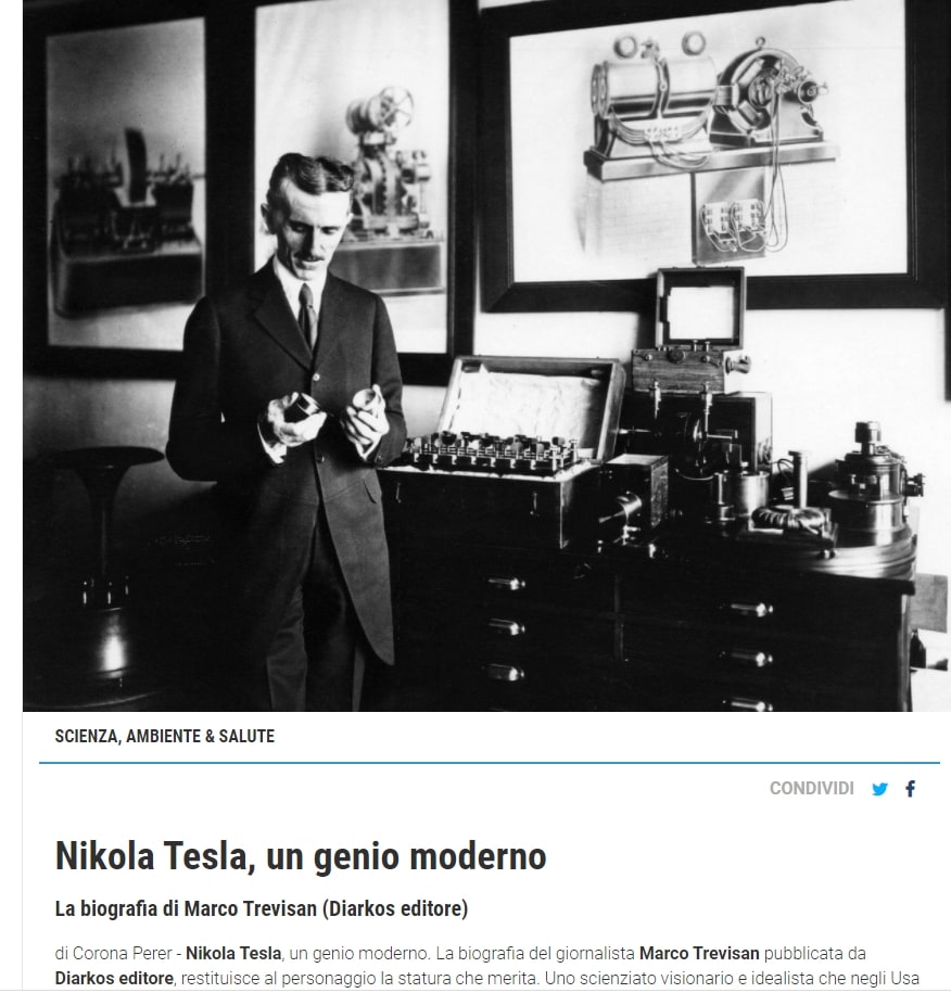 Nikola Tesla, un genio moderno La biografia di Marco Trevisan (Diarkos editore) su Giornale Sentire