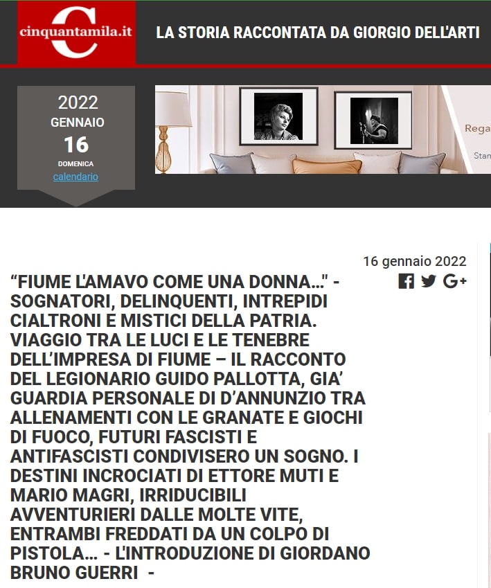 L'ultimo Legionario Un diciottenne a Fiume", di Guido Pallotta a cura di Aldo Grandi su Cinquantamila.it -LA STORIA RACCONTATA DA GIORGIO DELL'ARTI