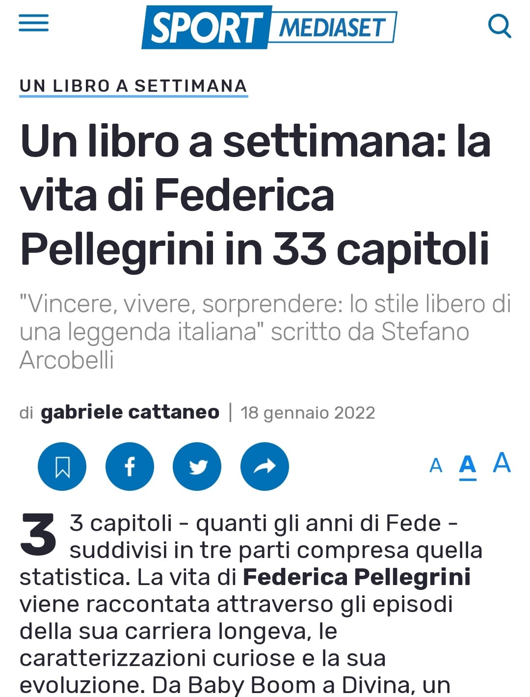 Un libro a settimana: la vita di Federica Pellegrini in 33 capitoli su Sport Mediaset