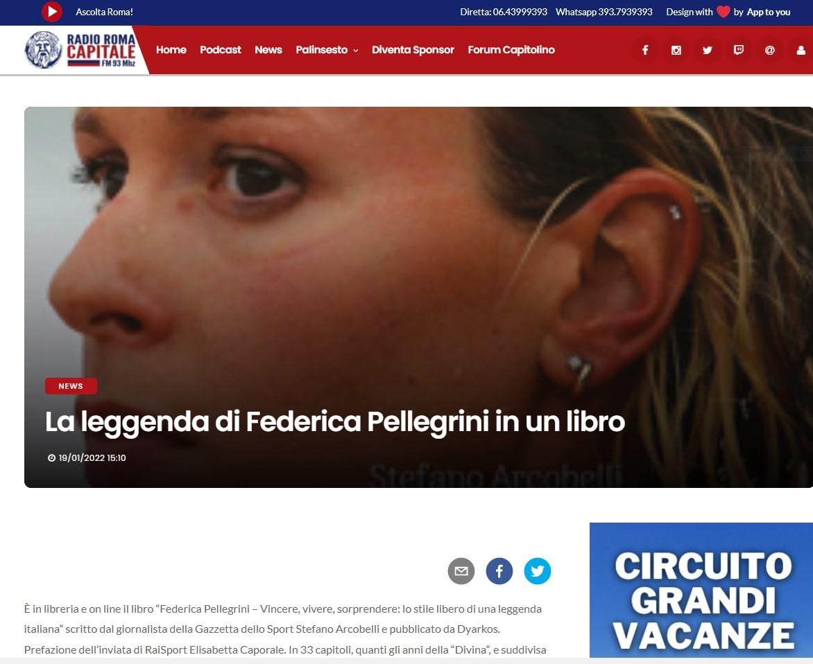 La leggenda di Federica Pellegrini in un libro su Radio Roma Capitale