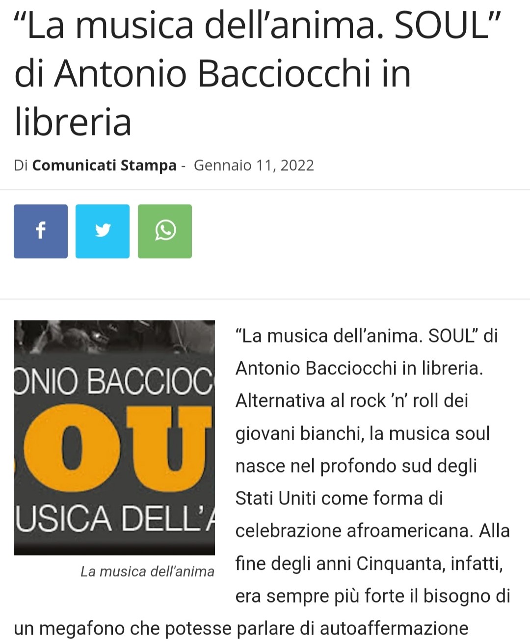 Libri: Soul. La musica dell’anima di Antonio Bacciocchi su Umbria e Cultura
