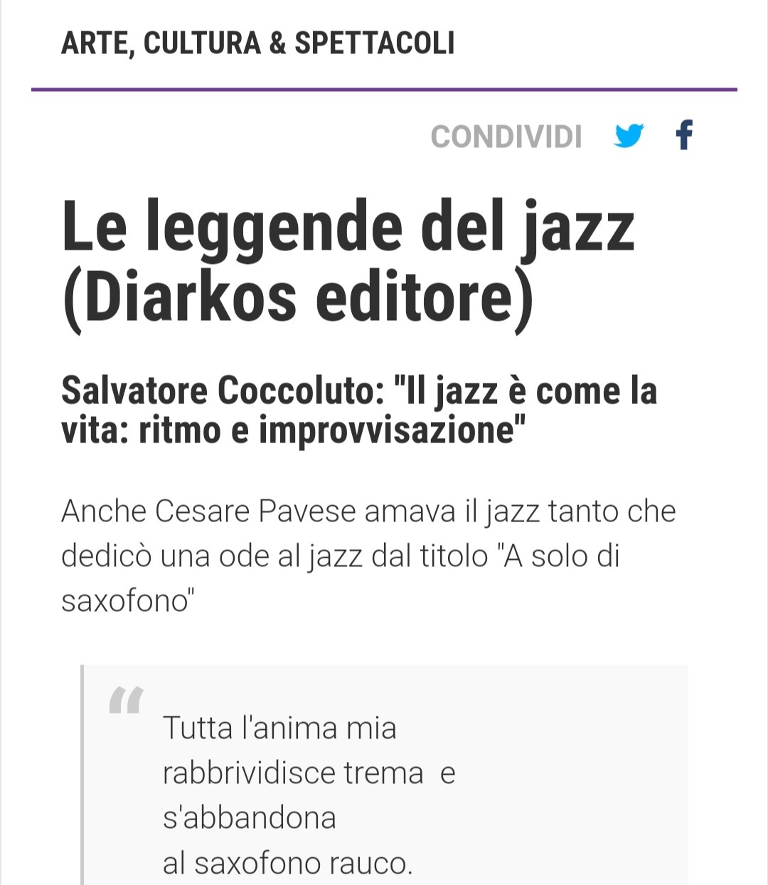 Salvatore Coccoluto: ''Il jazz è come la vita: ritmo e improvvisazione'' su Giornale Sentire