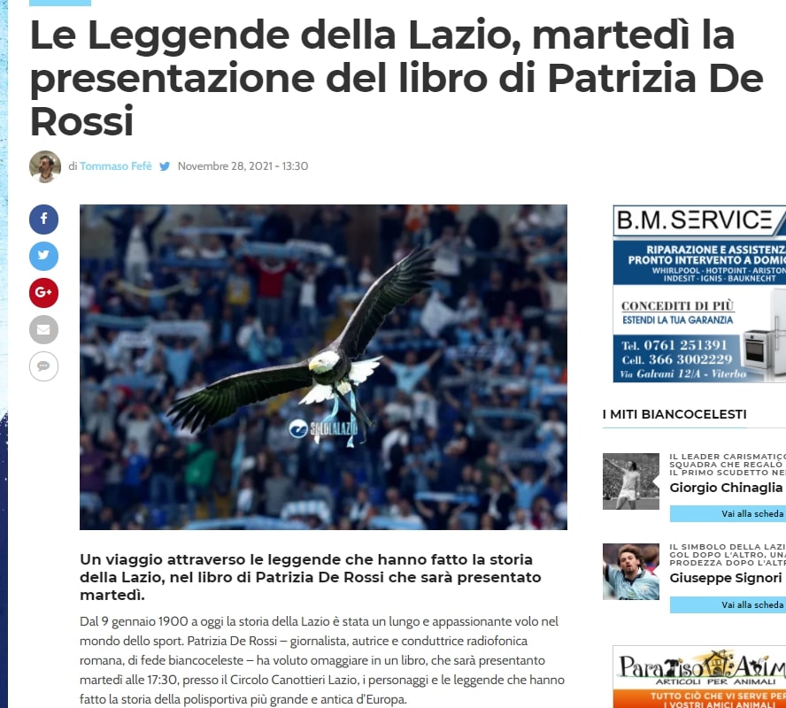Il 30 novembre la presentazione del libro “Le leggende della Lazio”: ecco di cosa tratta - Laziopress