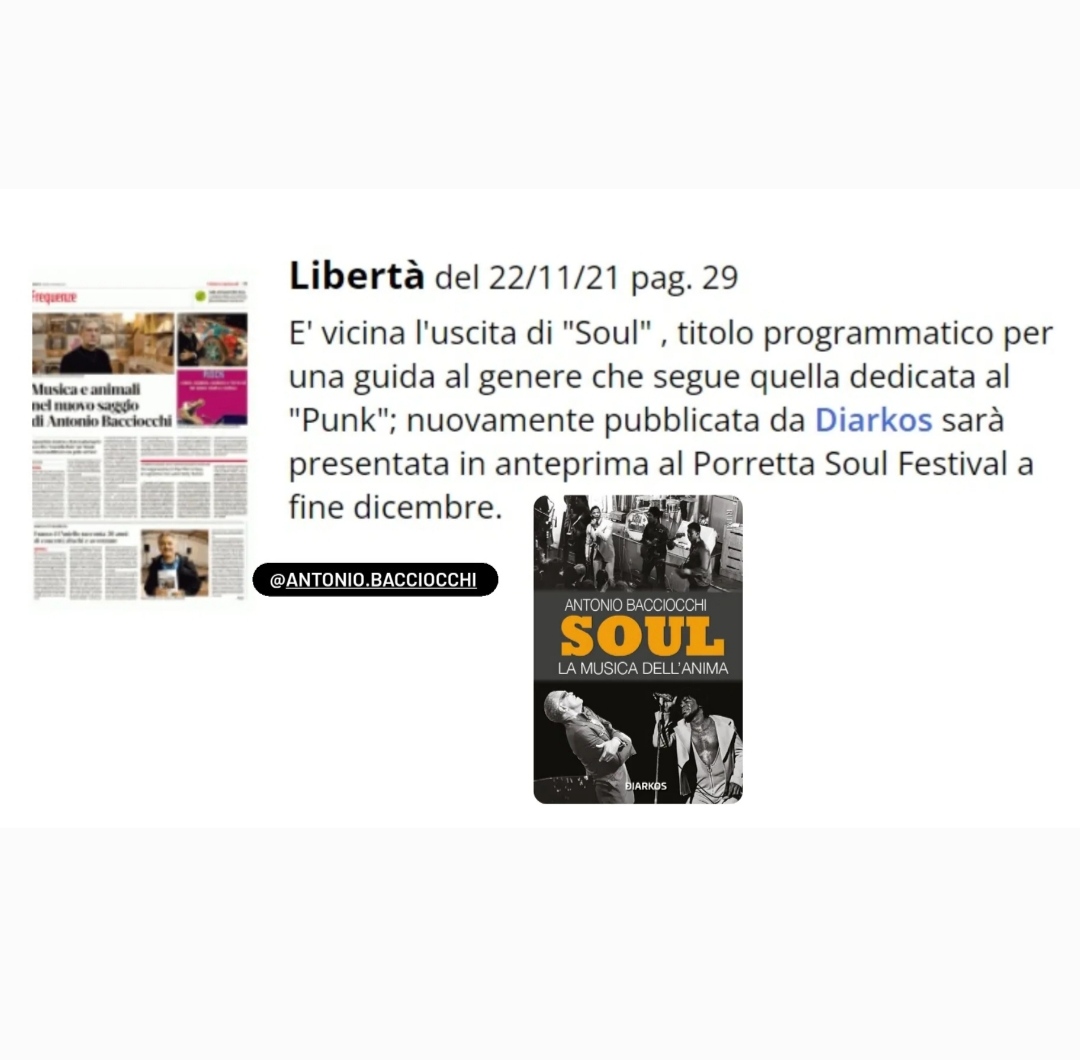 E' vicina l'uscita di "Soul" , titolo programmatico per una guida al genere su Libertà del 22/11/21 pag. 29