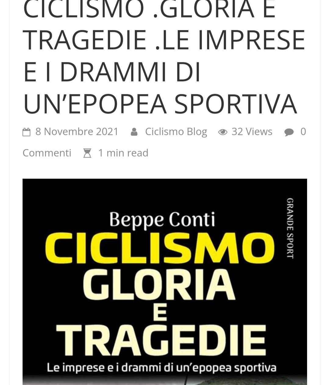 E USCITO IL LIBRO DI BEPPE CONTI: CICLISMO .GLORIA E TRAGEDIE .LE IMPRESE E I DRAMMI DI UN’EPOPEA SPORTIVA su Ciclismo Blog